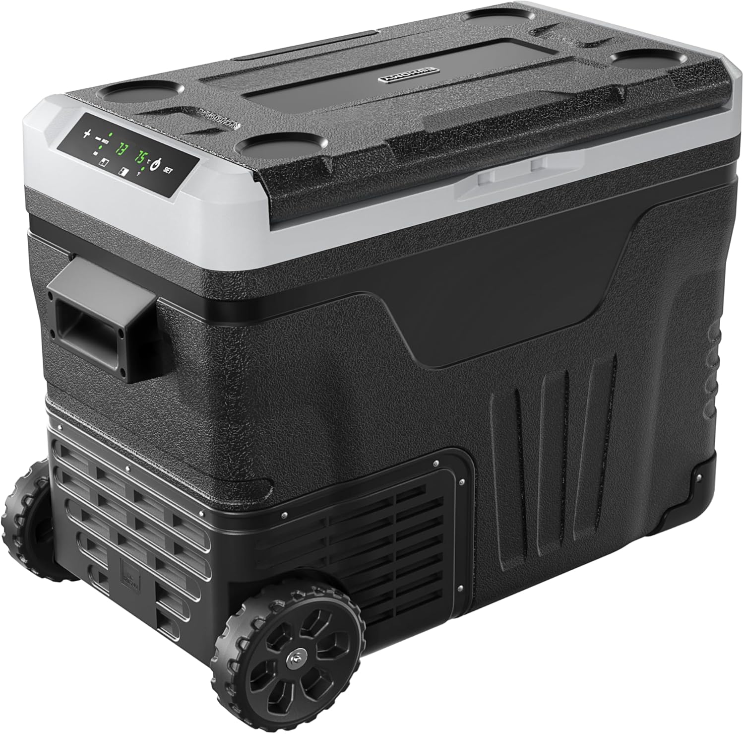 12 Volt Refrigerator, 37QT(35L) Electric Cooler, Portable Freezer 12V/24V DC 110-240V AC, 12V Fridge -4℉~68℉, 12V Cooler with Wheels & 2 Baskets for Travel, Truck, Boat, Camping