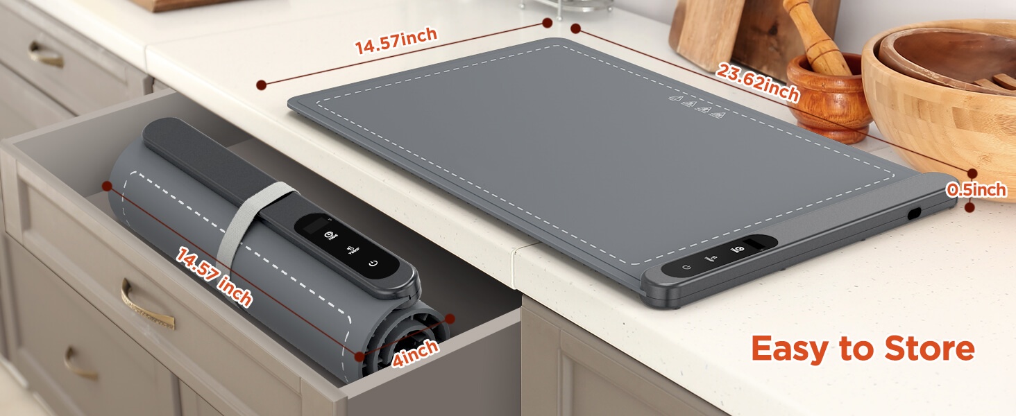 Food Warming Mat, Upgrade High-tech Graphene Heating Film, Fast Full Surface Heating Mat with 6 Level Adjustable Temperature and 6 Hours Timer, Roll Up Food Warmers for Parties Buffet